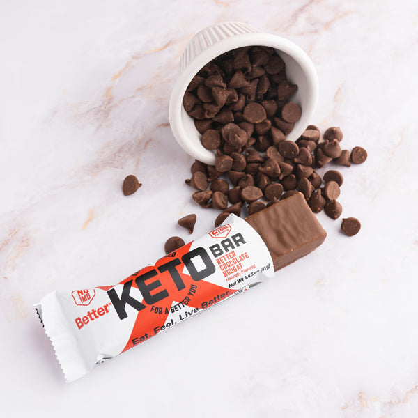 Chocolate lovers celebrate with twice the deliciousness! Indulge with our Double Chocolate Chip or Peanut Butter Cup protein bars packed with D-BHB, our patented bio-identical ketone. These Keto Protein Bars contain only 2g net carbs with no added sugar, no IMO and they’re gluten-free. These rich, creamy, craveable bars are guaranteed to satisfy your sweet tooth while supporting your weight loss. Go ahead and treat yourself with the feel-good candy bar, you deserve it!