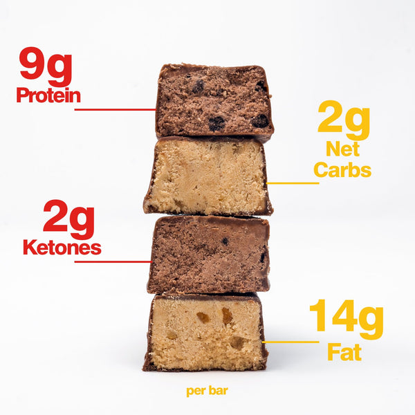 Each bar contains 14g of fat, 9g of protein, and only 2g net carbs.